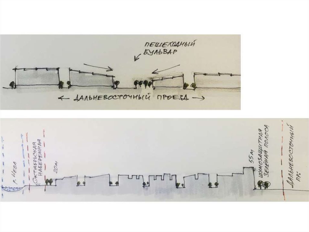 • Озеленение вдоль фронта