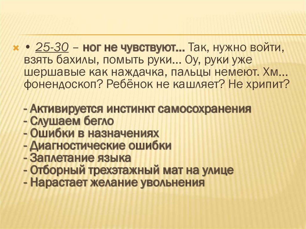 • 25-30 – ног не чувствуют… Так, нужно войти,