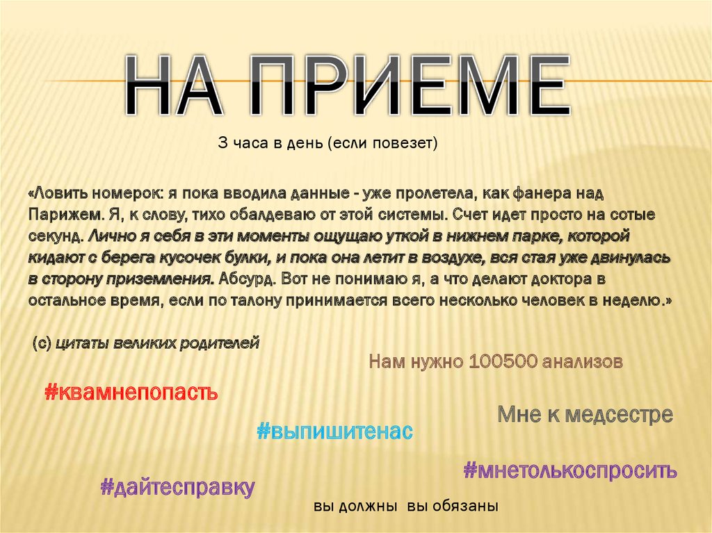 остальное время, если по талону принимается всего несколько человек в неделю.»