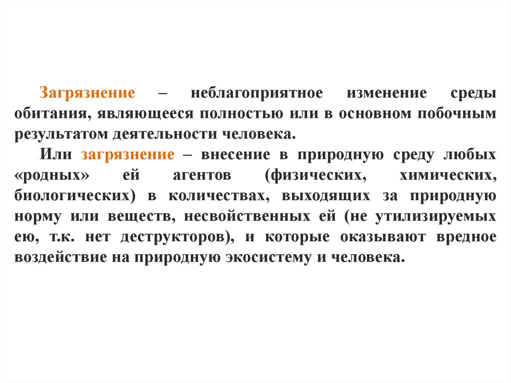Человек, загрязняя природную среду, и, занимая местосуперхищника относительно остальных живых существ, получает