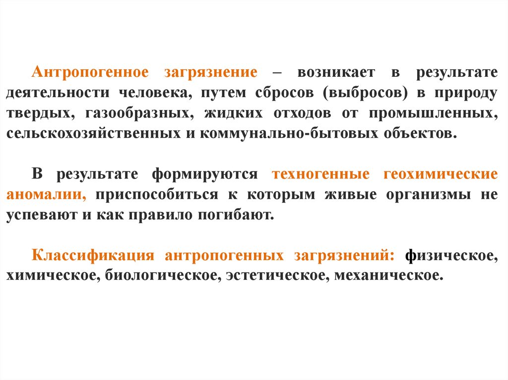 Антропогенное воздействие – деятельность, связанная с