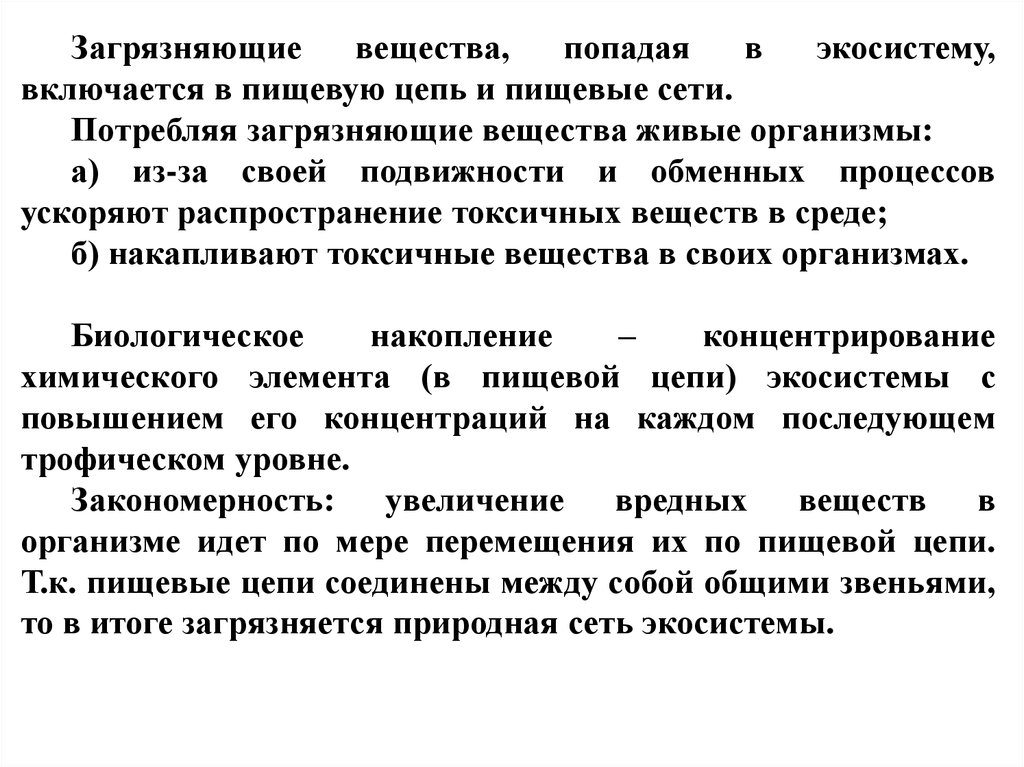 организме идет по мере перемещения их по пищевой цепи.