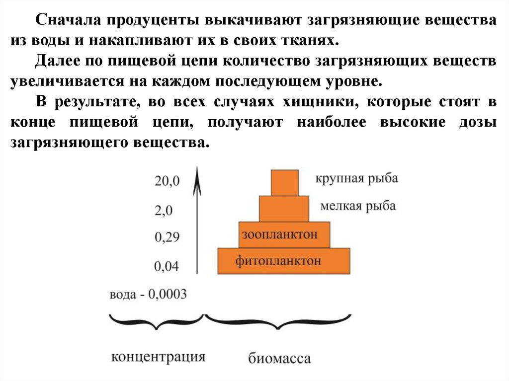 Далее по пищевой цепи количество загрязняющих веществ