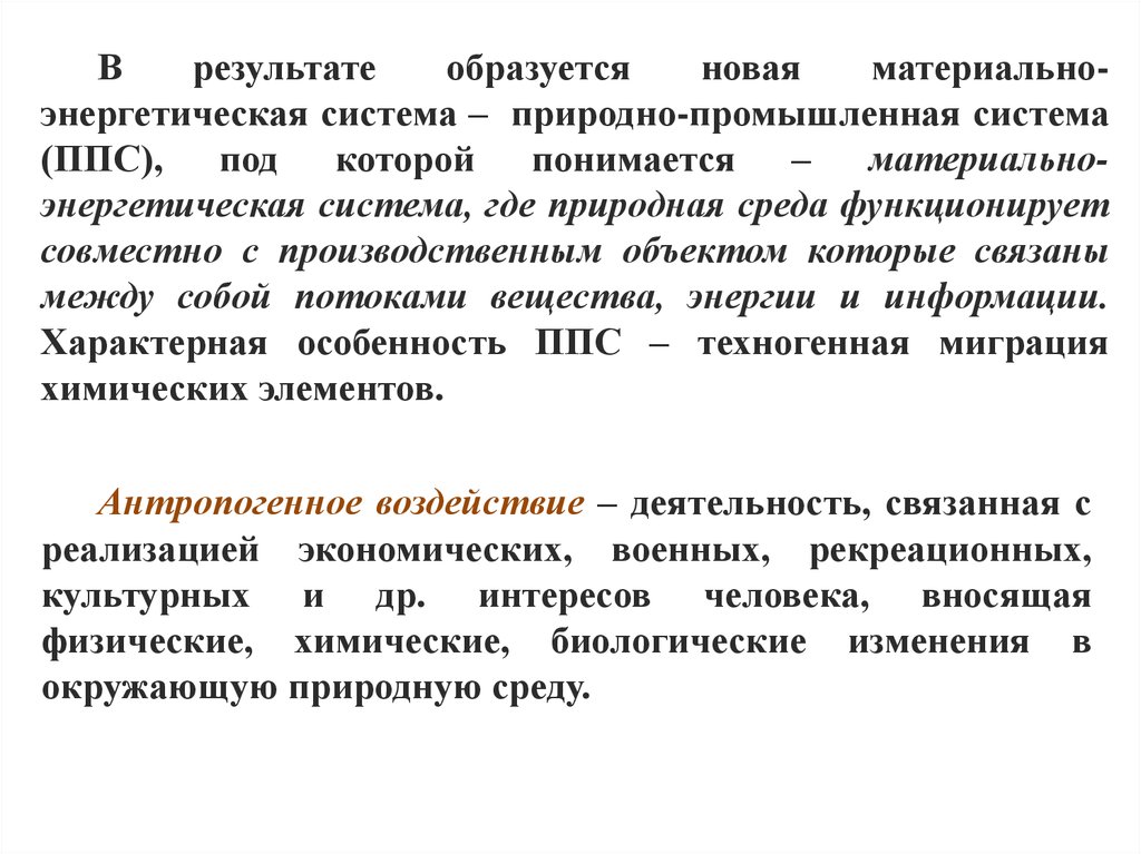 (ППС), под которой понимается – материальноэнергетическая система, где природная среда функционирует