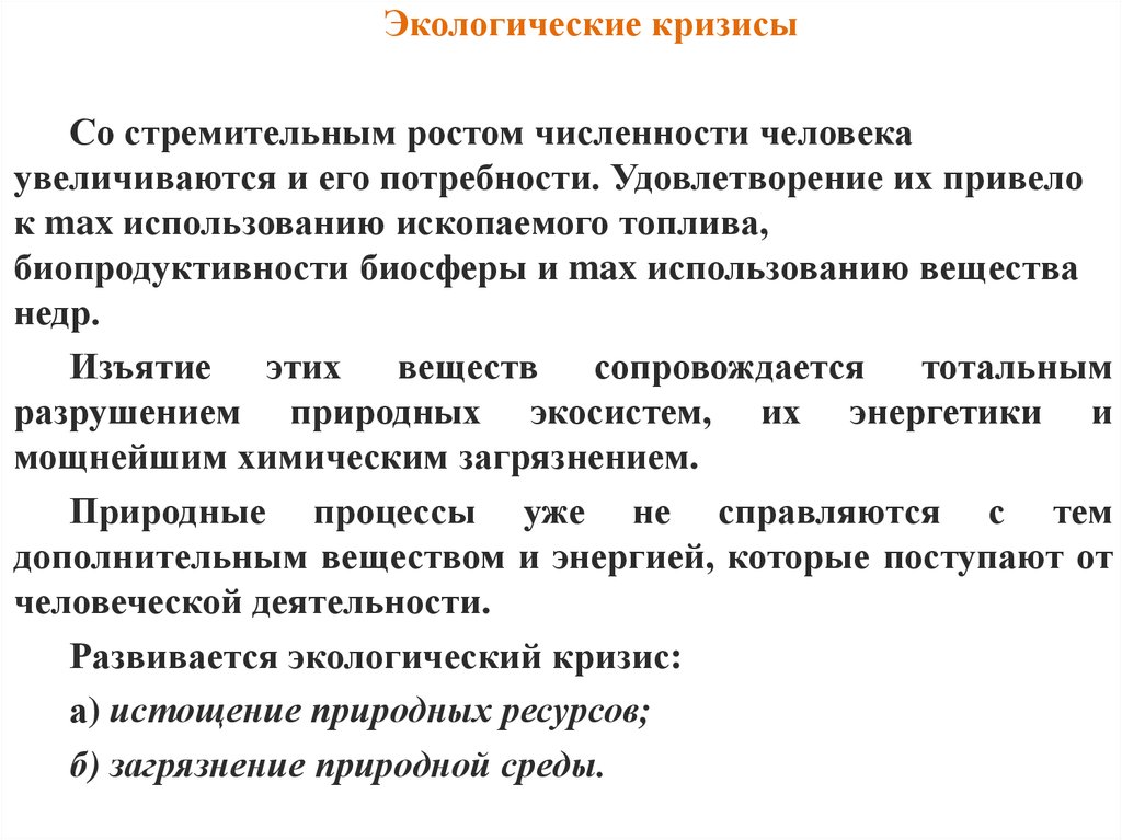 Демографическое состояние человеческой популяцииСокращение видов идет на фоне стремительного роста численности
