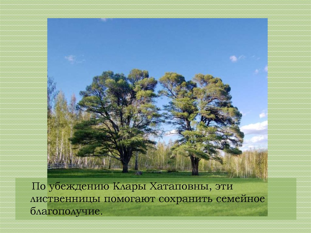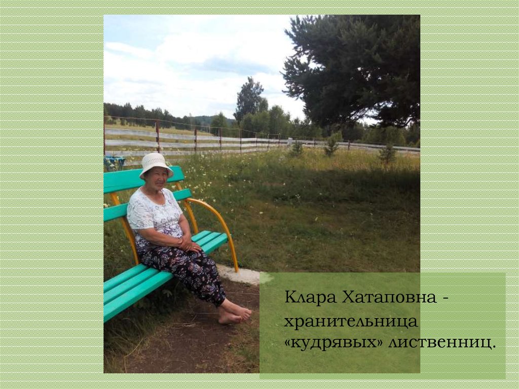 Клара Хатаповна хранительница«кудрявых» лиственниц.