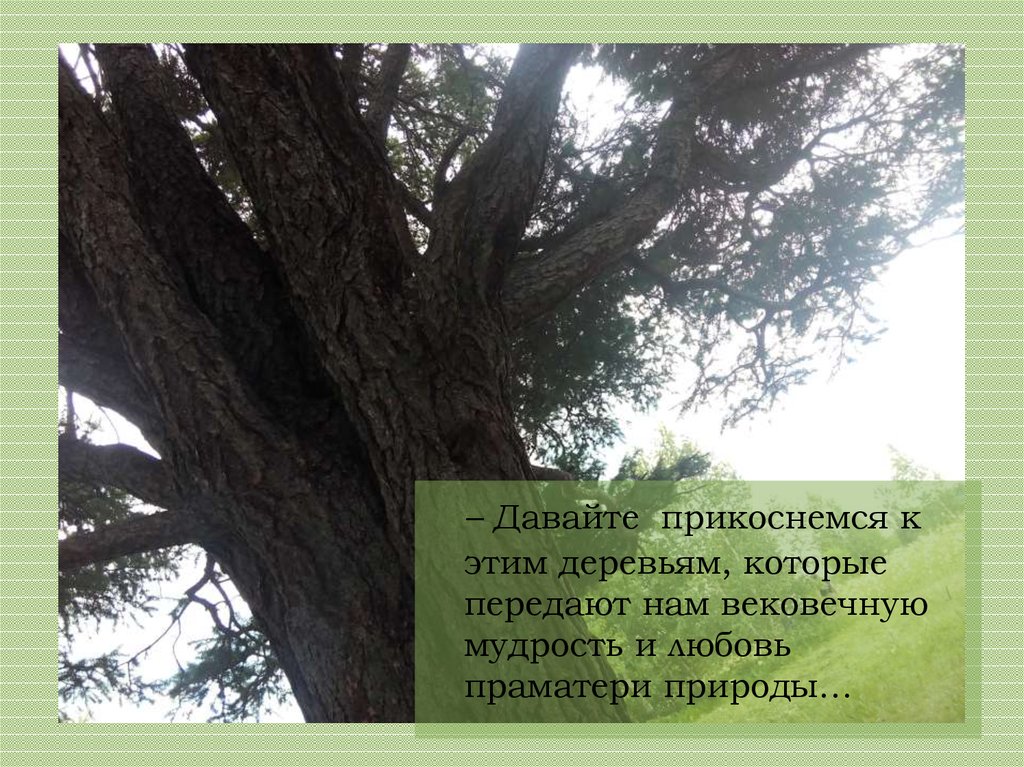 – Давайте прикоснемся кэтим деревьям, которые