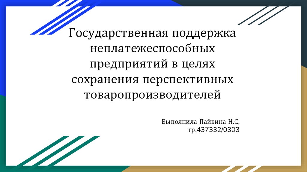 Государственная поддержка неплатежеспособных предприятий в целях сохранения перспективных товаропроизводителей