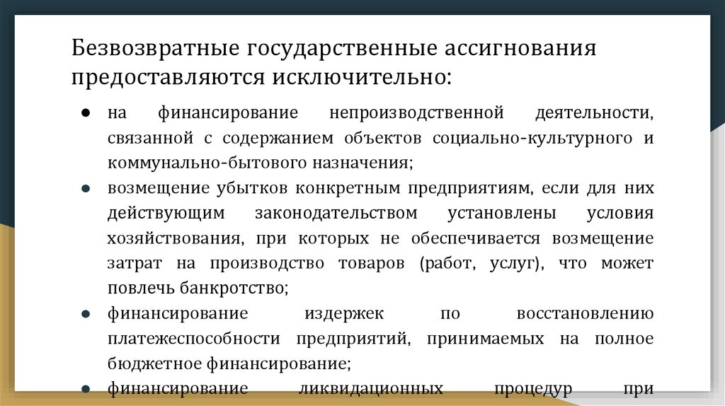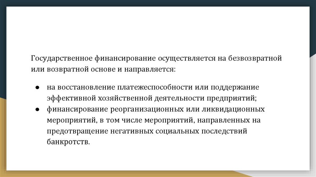предприятию в виде государственной финансовой поддержки;