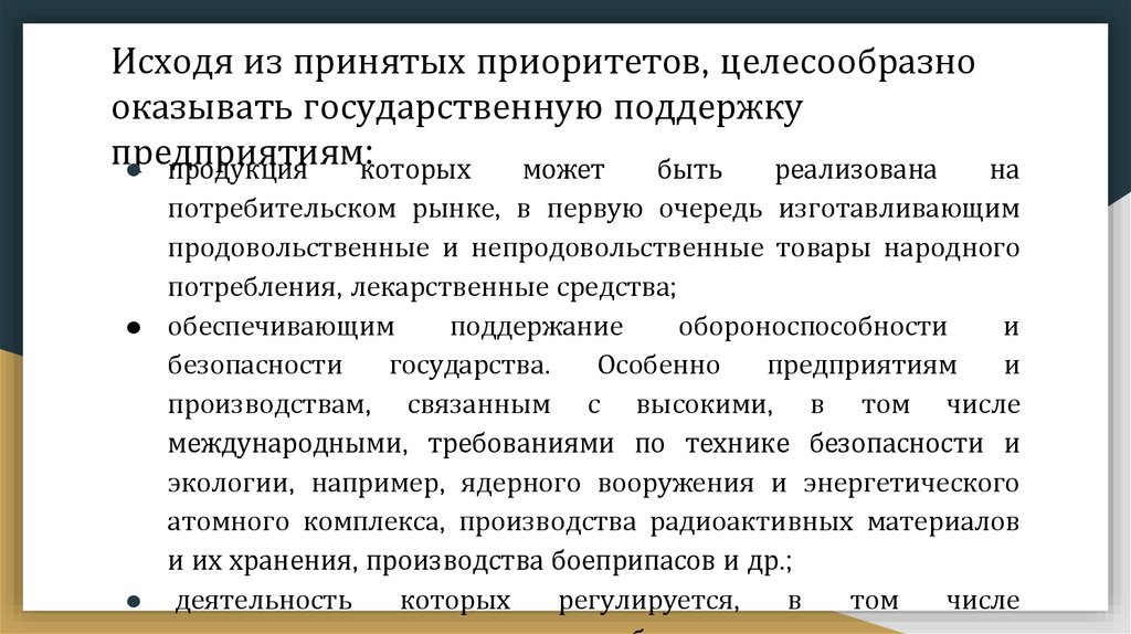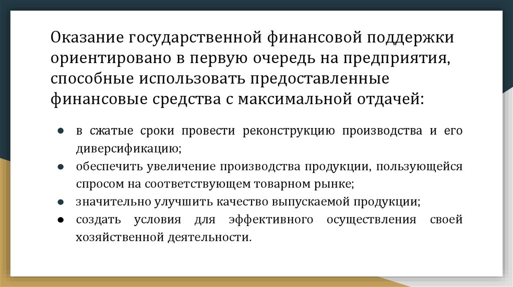 Оказание государственной финансовой поддержкиориентировано в первую очередь на предприятия,