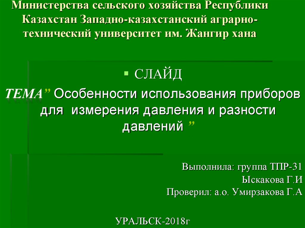 1. Министерства сельского хозяйства Республики Казахстан Западно-казахстанский аграрно-технический университет им. Жангир хана