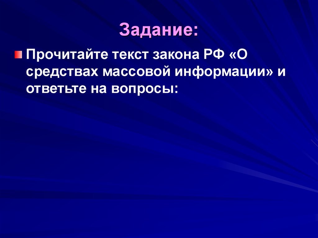 Прочитайте текст закона РФ «Осредствах массовой информации» и