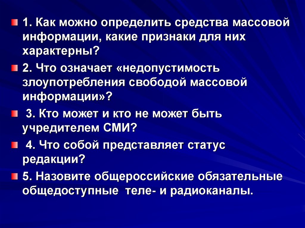 1. Как можно определить средства массовойинформации, какие признаки для них