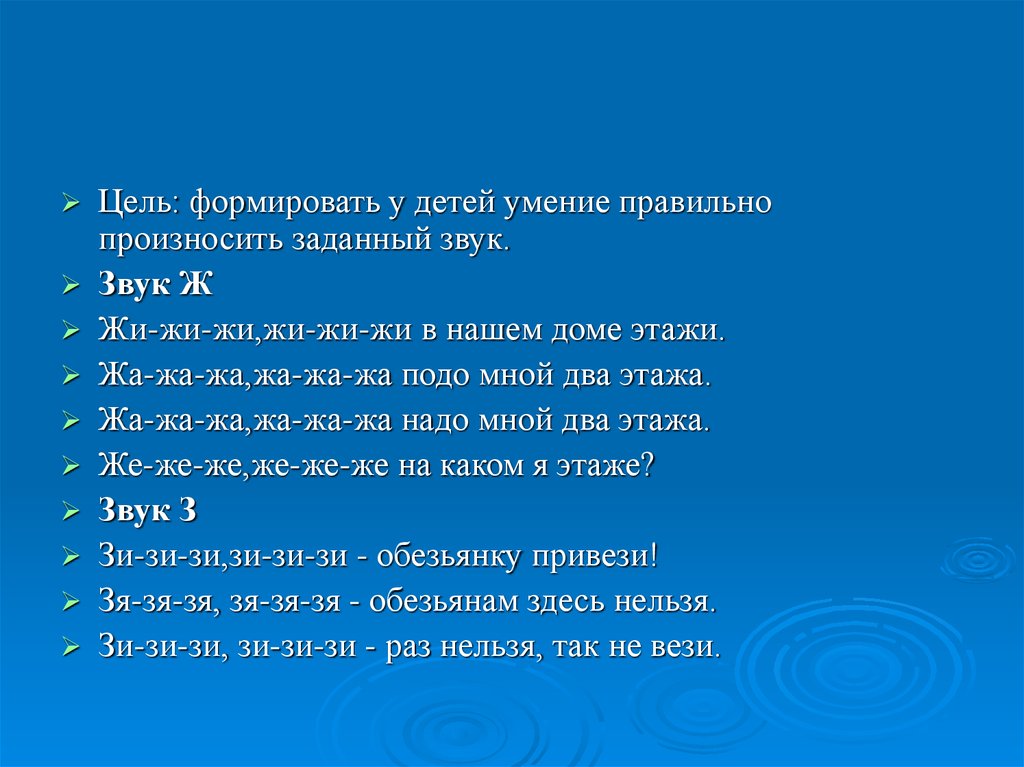 Цель: формировать у детей умение правильнопроизносить заданный звук.