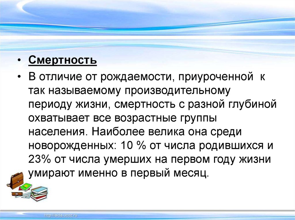 15. Выводы На основании церковной статистики, материалов по движению населения в XIX в. характеризуются основные демографические