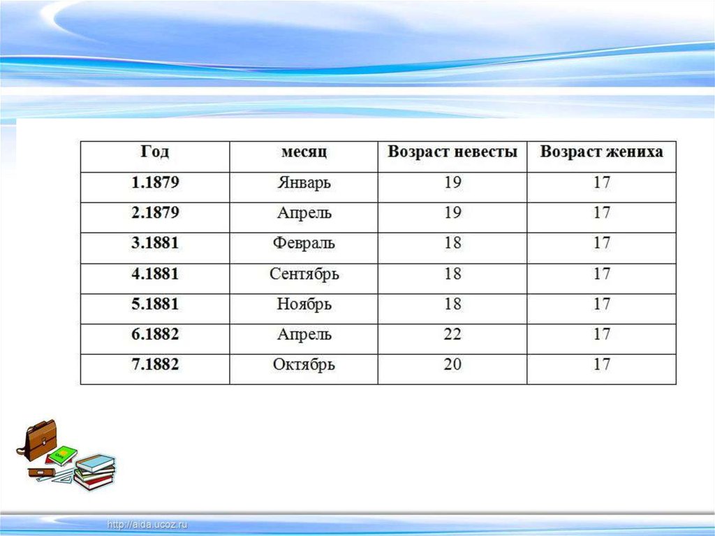 • Всего в Удмуртии конца XIX в. ввозрасте до 17 лет состояло в браке,