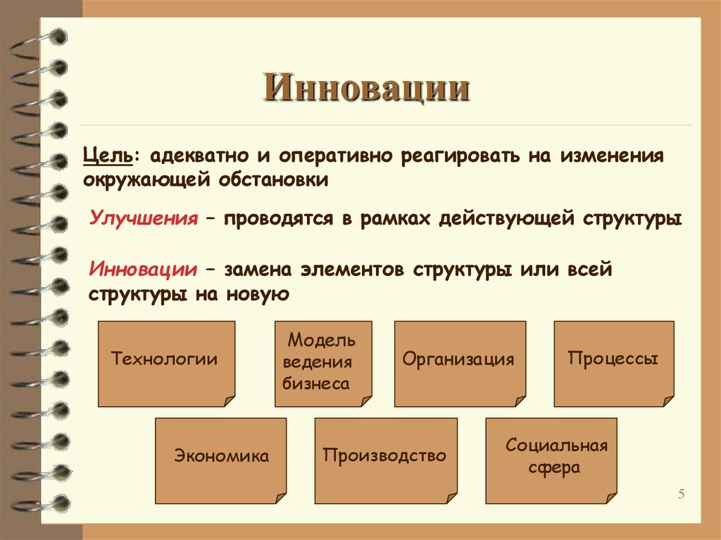 Инновации – замена элементов структуры или всей