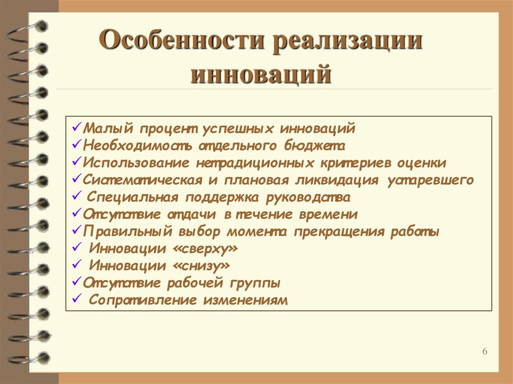 Особенности реализацииинноваций