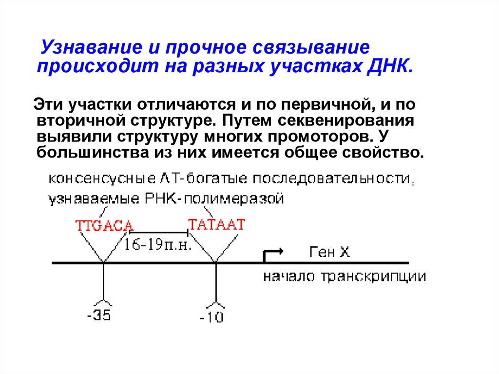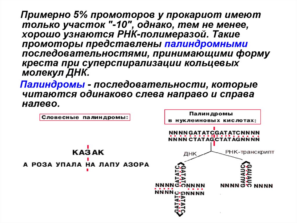 Примерно 5% промоторов у прокариот имеюттолько участок "-10", однако, тем не менее,