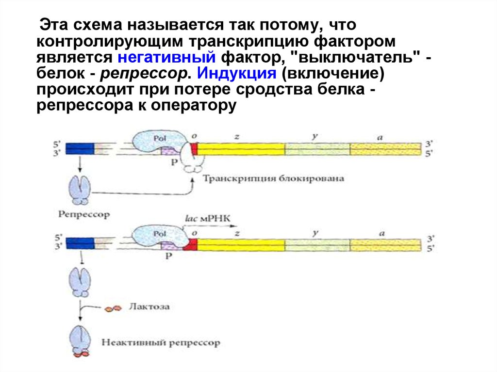 Регуляция транскрипции у прокариотСхема негативной индукции Жакоба и Моно