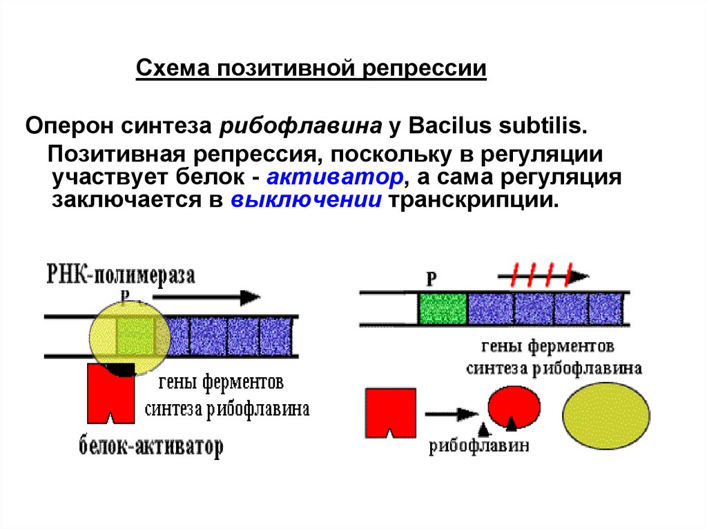Схема позитивной репрессииОперон синтеза рибофлавина у Вacilus subtilis.