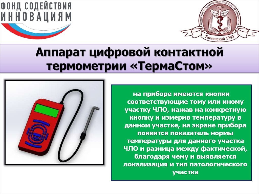 2. Разработка стоматологического аппарата цифровой контактной термометрии «ТермаСтом» для ранней диагностики и оценки лечения