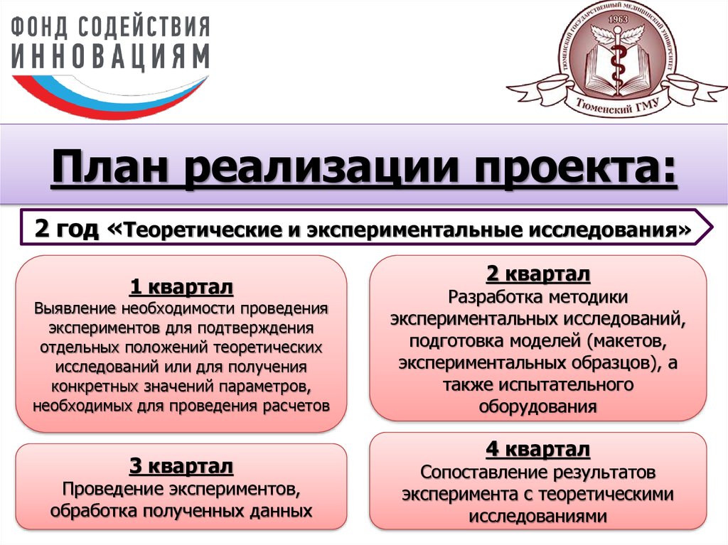 План реализации проекта:2 год «Теоретические и экспериментальные исследования»