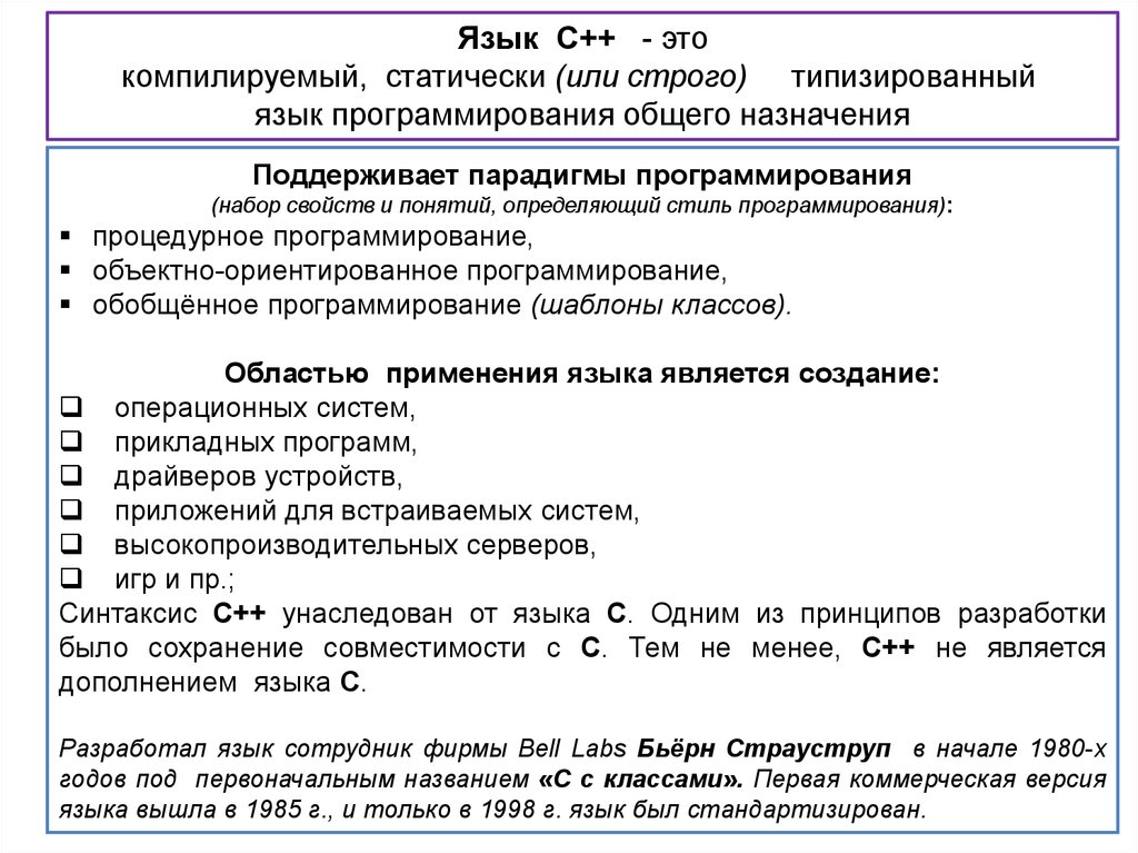 Язык С++ - этокомпилируемый, статически (или строго) типизированный