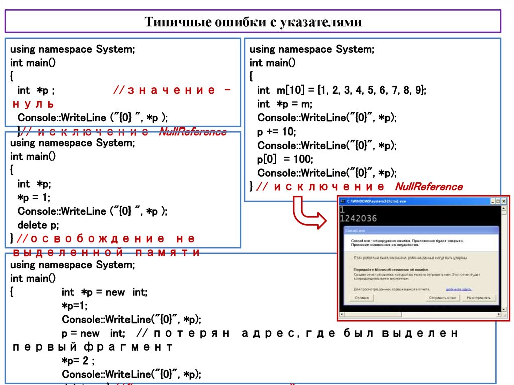 Console::WriteLine("№6 {0} {1} {2} {3}", *(pm-1) , *(int*)pmm ,*(int*)(pmm-1) , *(int*)(pmm-2));