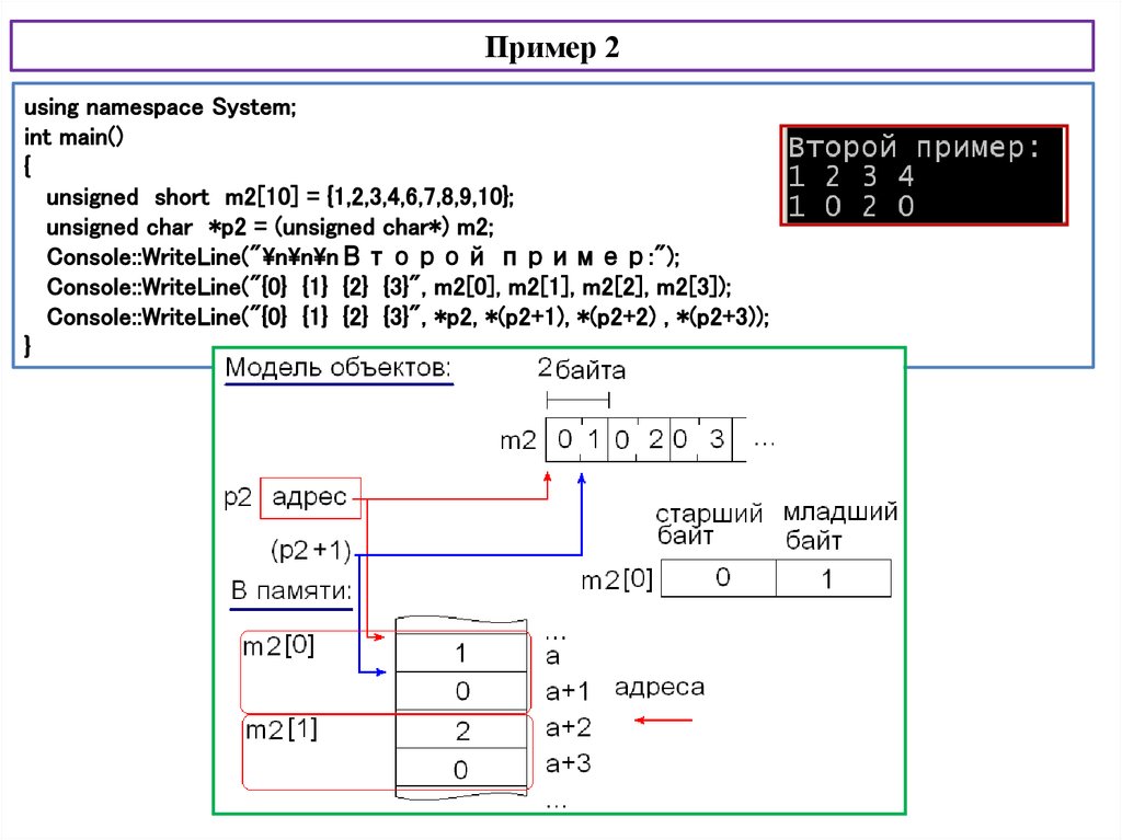 Console::WriteLine("№2 {0} {1} {2} {3}", *pm , *(pm+1) ,*(int*) pmm , *(int*) ( pmm+1) );