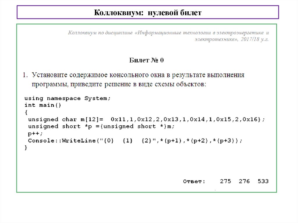 Тема коллоквиумаобработка целочисленных объектов с помощью указателей