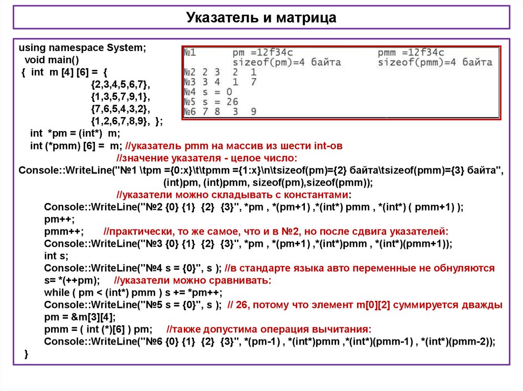 int (*pmm) [6] = m; //указатель pmm на массив из шести int-ов