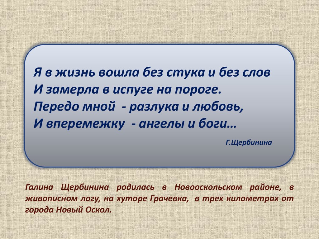 Я в жизнь вошла без стука и без словИ замерла в испуге на пороге.