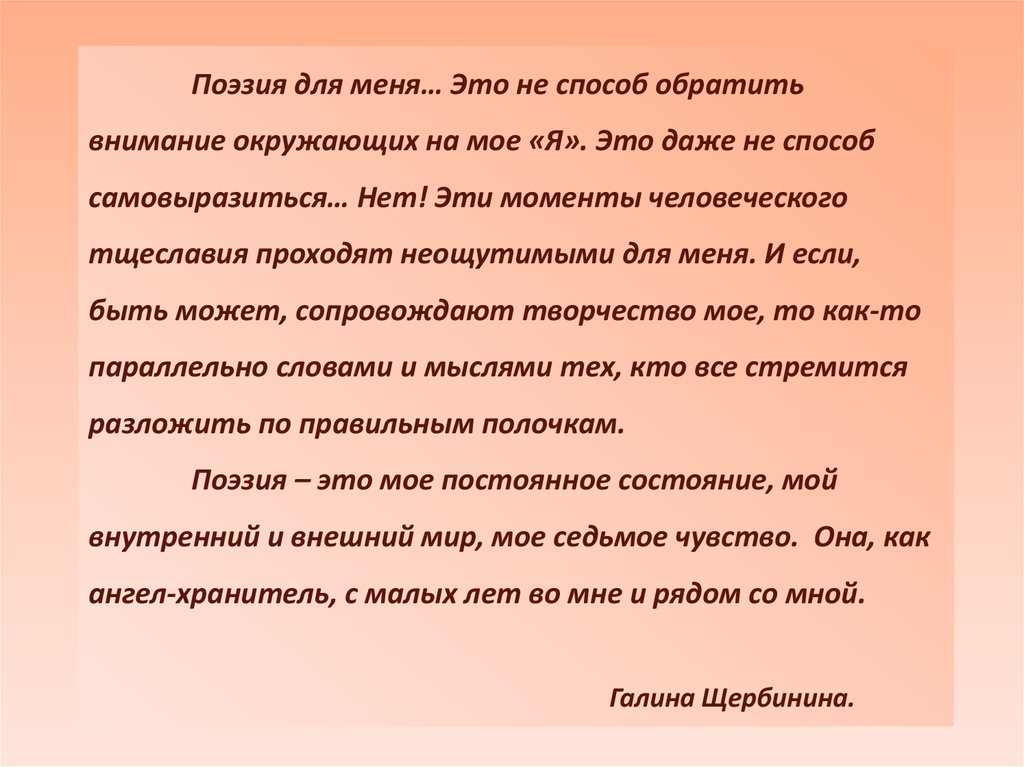 Поэзия для меня… Это не способ обратитьвнимание окружающих на мое «Я». Это даже не способ