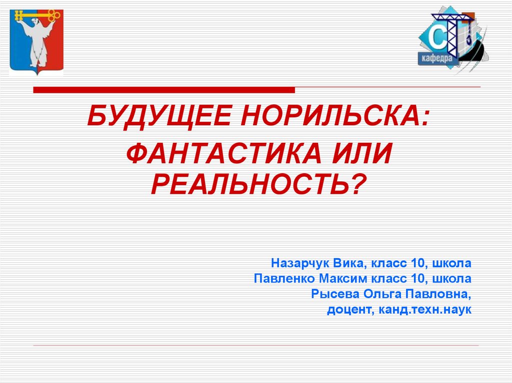 БУДУЩЕЕ НОРИЛЬСКА:ФАНТАСТИКА ИЛИ