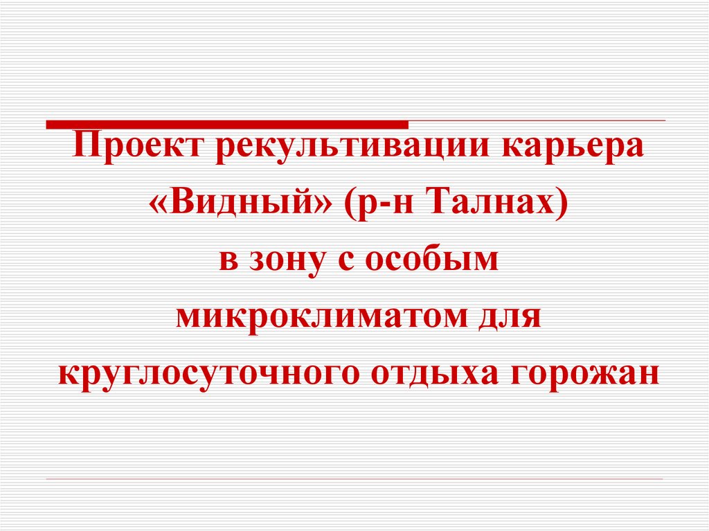 Проект рекультивации карьера«Видный» (р-н Талнах)