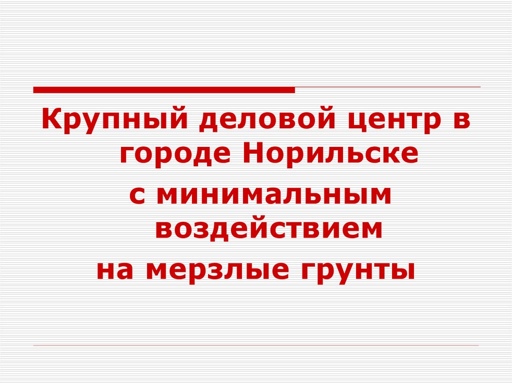 38. Крупный деловой центр в городе Норильске с минимальным воздействием на мерзлые грунты
