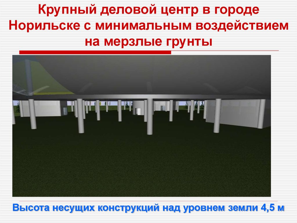 36. Крупный деловой центр в городе Норильске с минимальным воздействием на мерзлые грунты