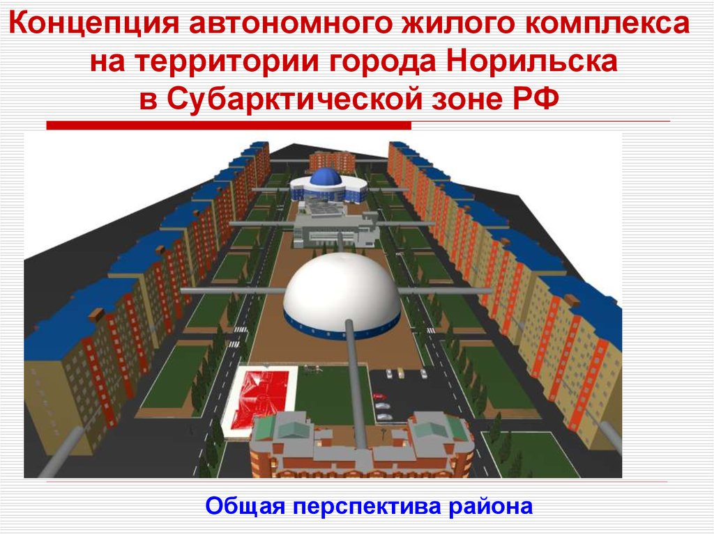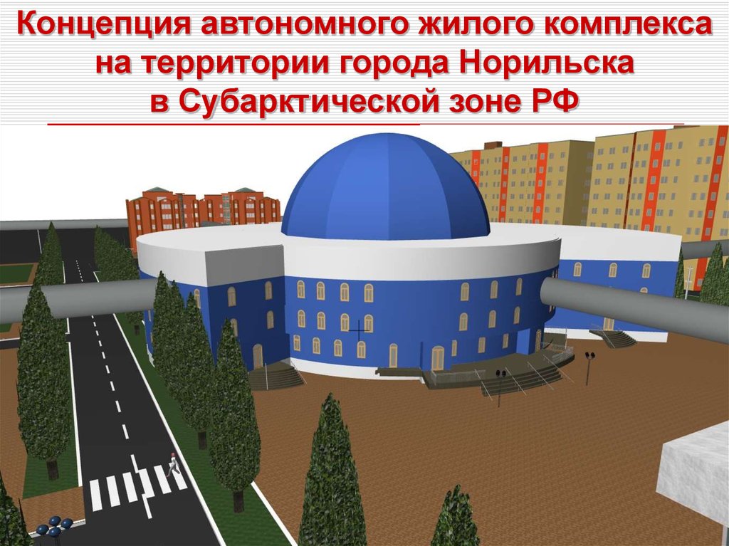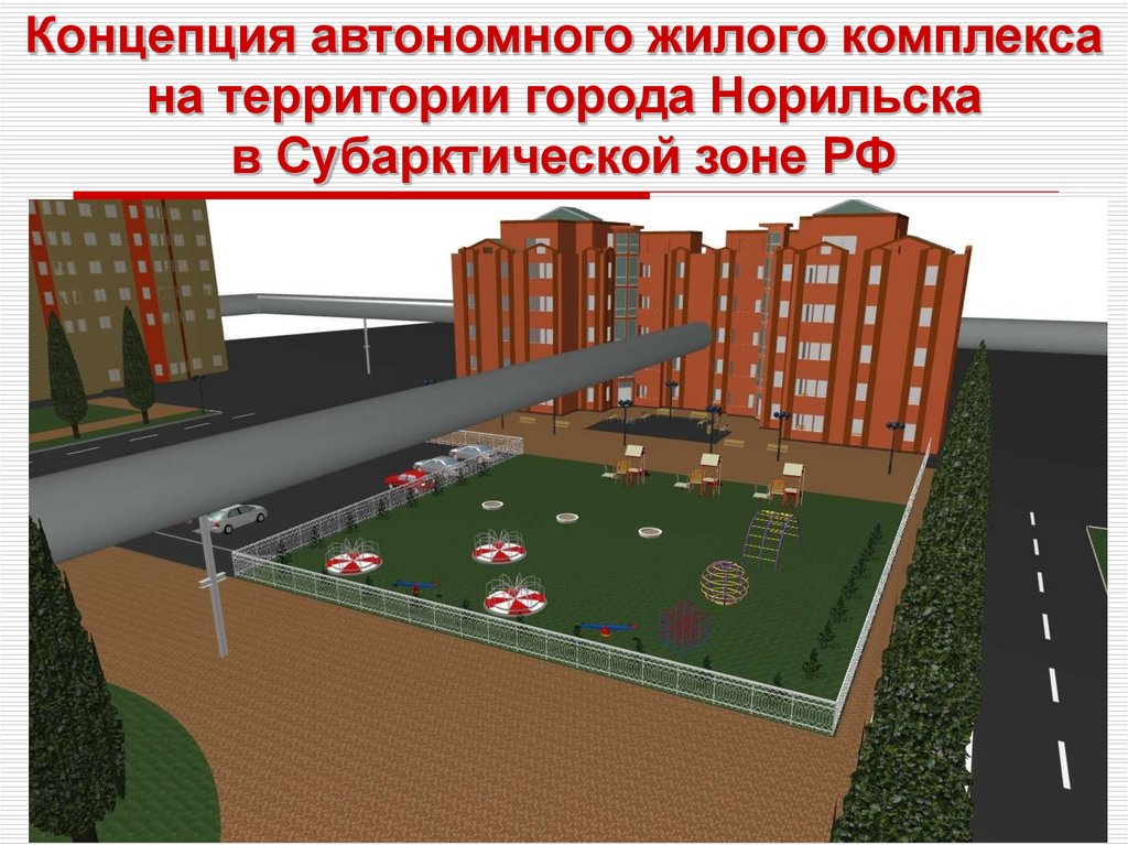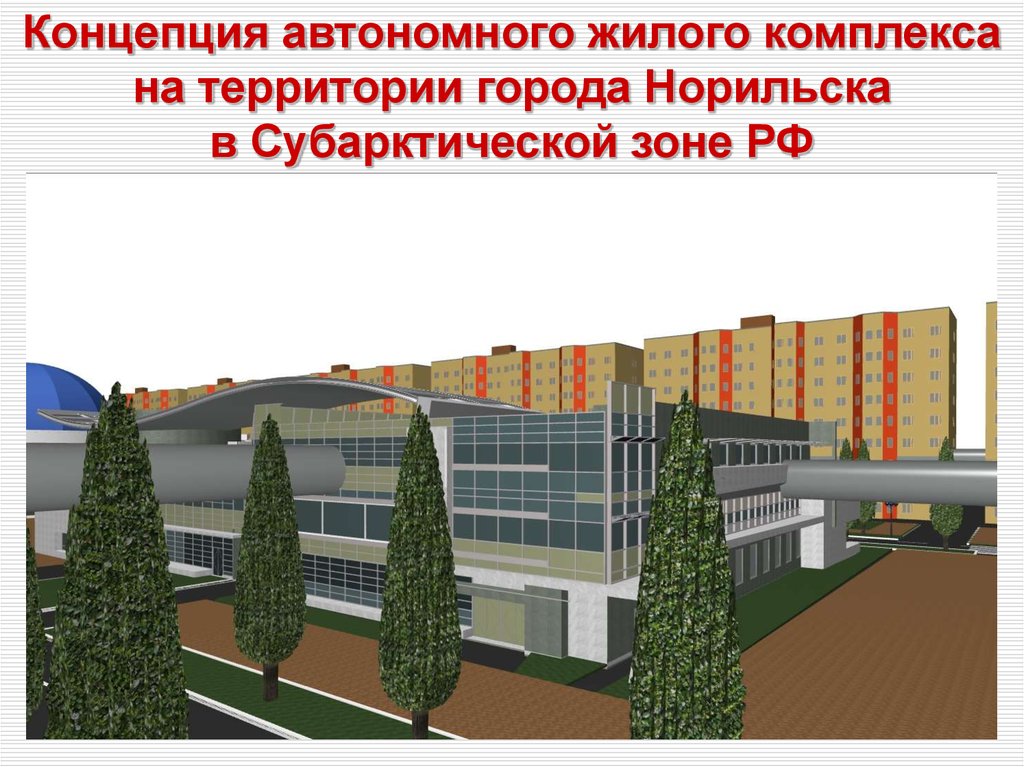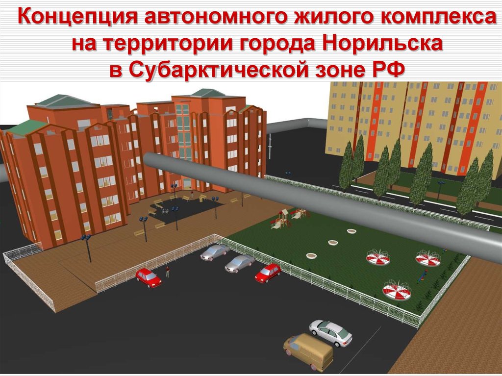 Концепция жилого комплекса для проживания в суровом климате, которыйпозволяет в пределах территории разместить: жилые здания, школу,