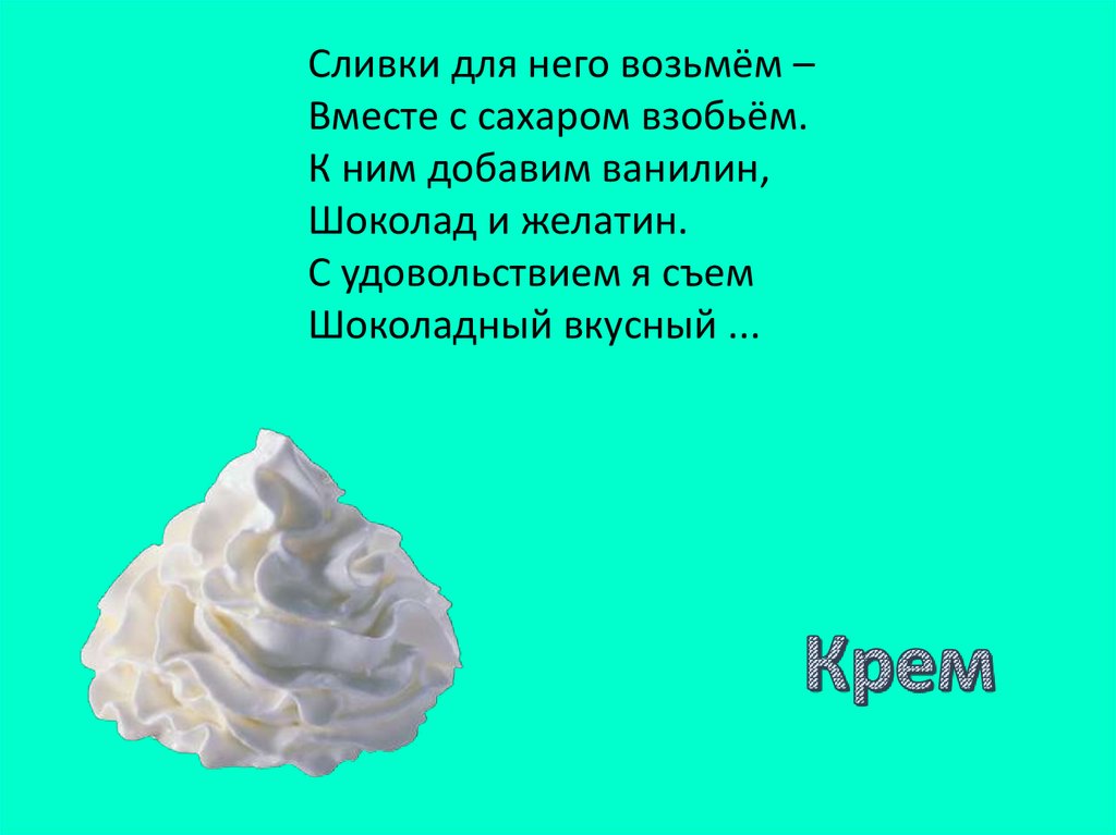 Сливки для него возьмём –Вместе с сахаром взобьём.