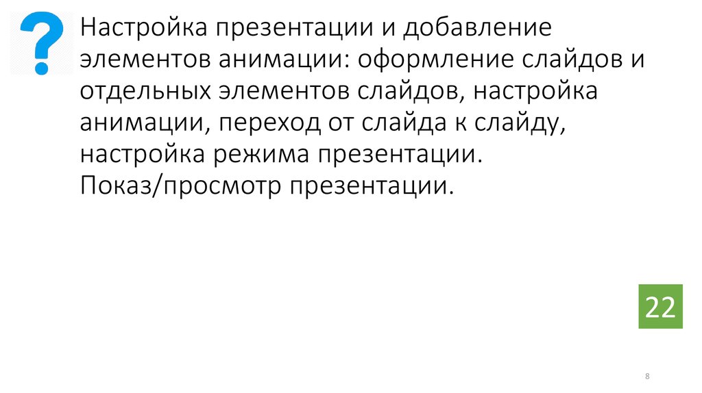 Настройка презентации и добавлениеэлементов анимации: оформление слайдов и