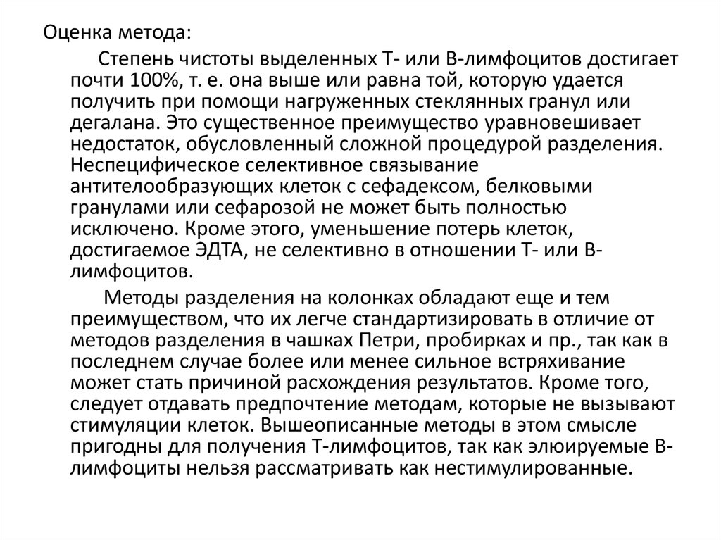 Оценка метода:Степень чистоты выделенных Т- или В-лимфоцитов достигает