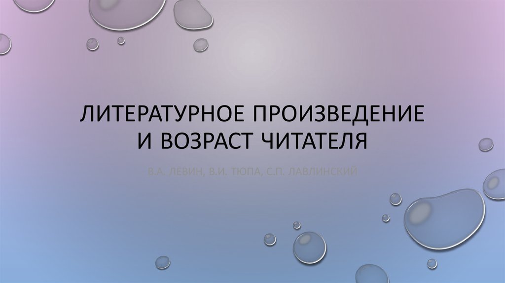 ЛИТЕРАТУРНОЕ ПРОИЗВЕДЕНИЕИ ВОЗРАСТ ЧИТАТЕЛЯ
