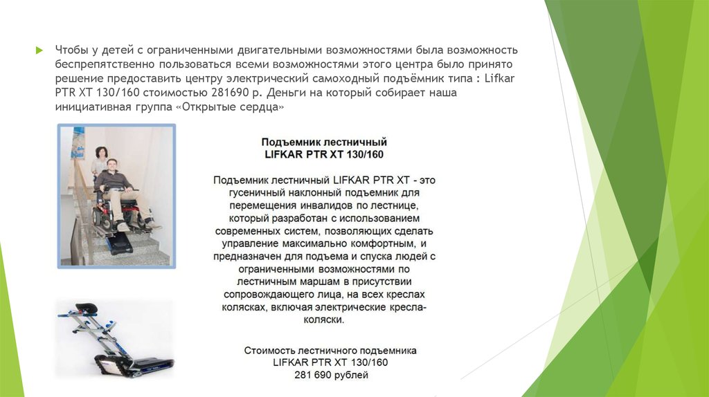Чтобы у детей с ограниченными двигательными возможностями была возможностьбеспрепятственно пользоваться всеми возможностями этого центра было принято