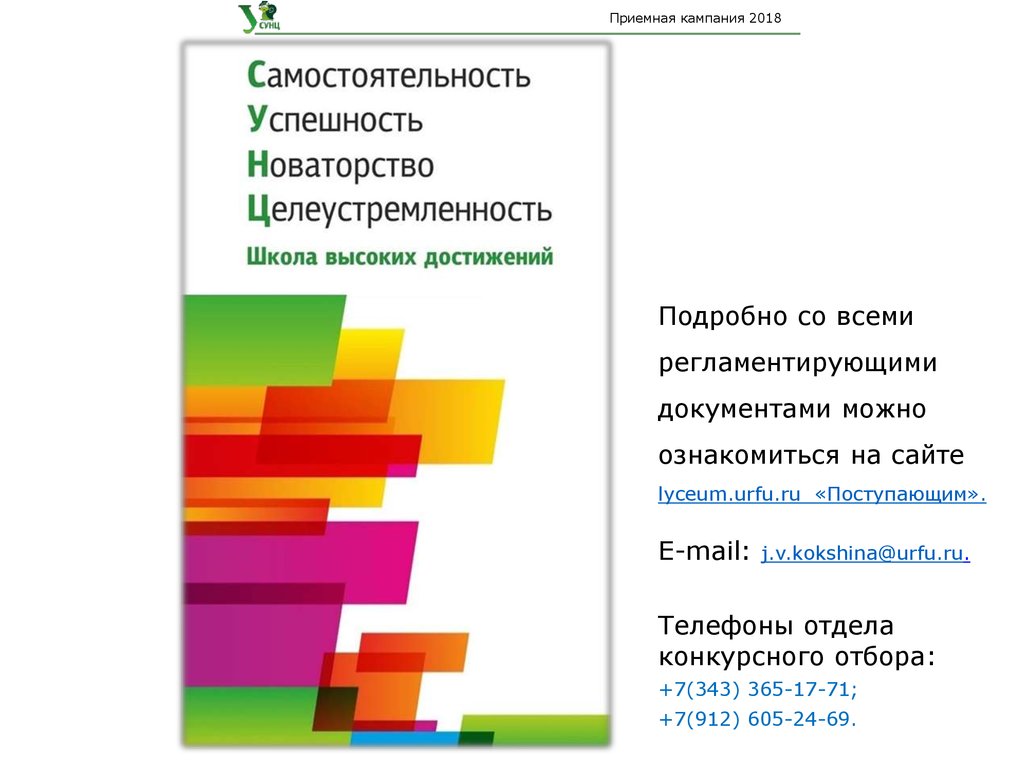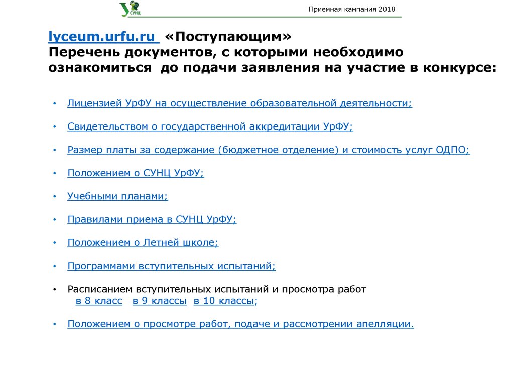 Приемная кампания 2018lyceum.urfu.ru «Поступающим»