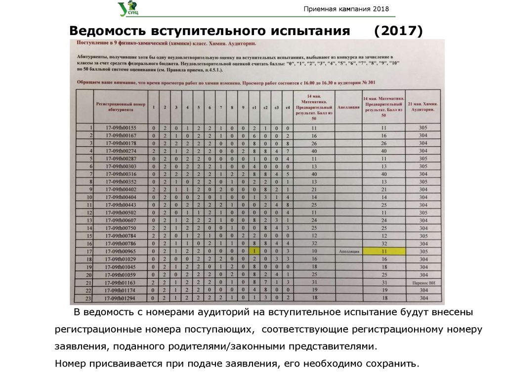 В ведомость с номерами аудиторий на вступительное испытание будут внесены