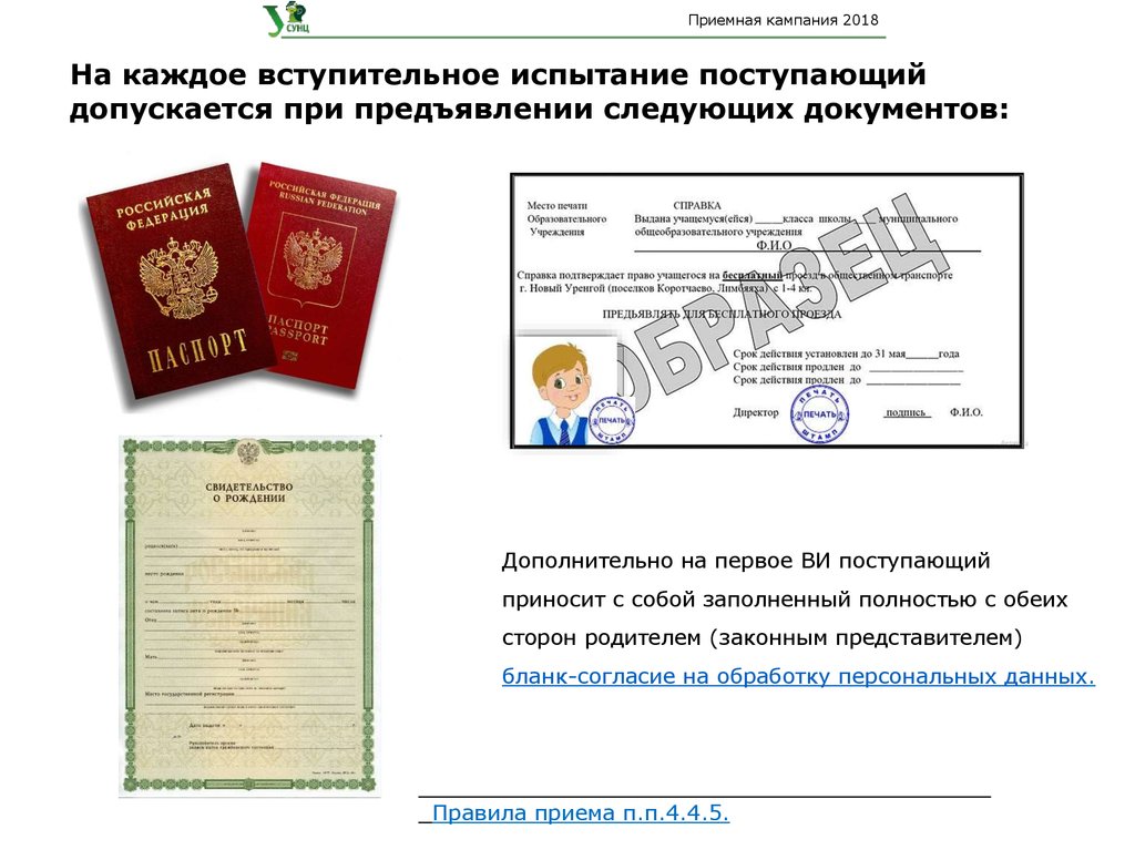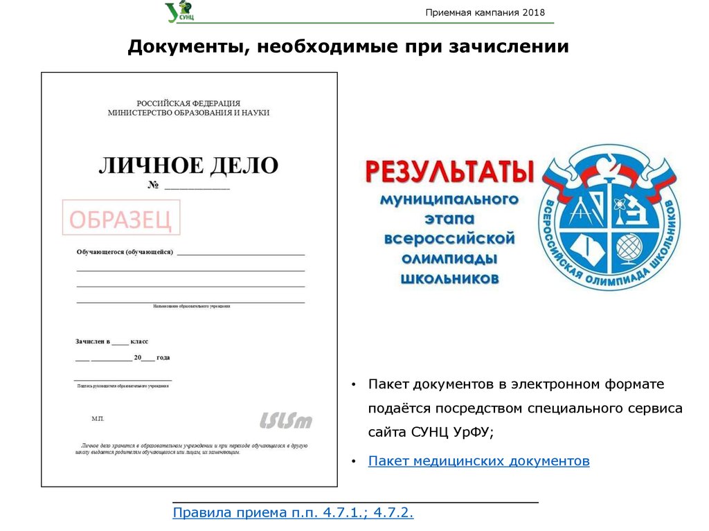 Приемная кампания 2018Документы, необходимые при зачислении