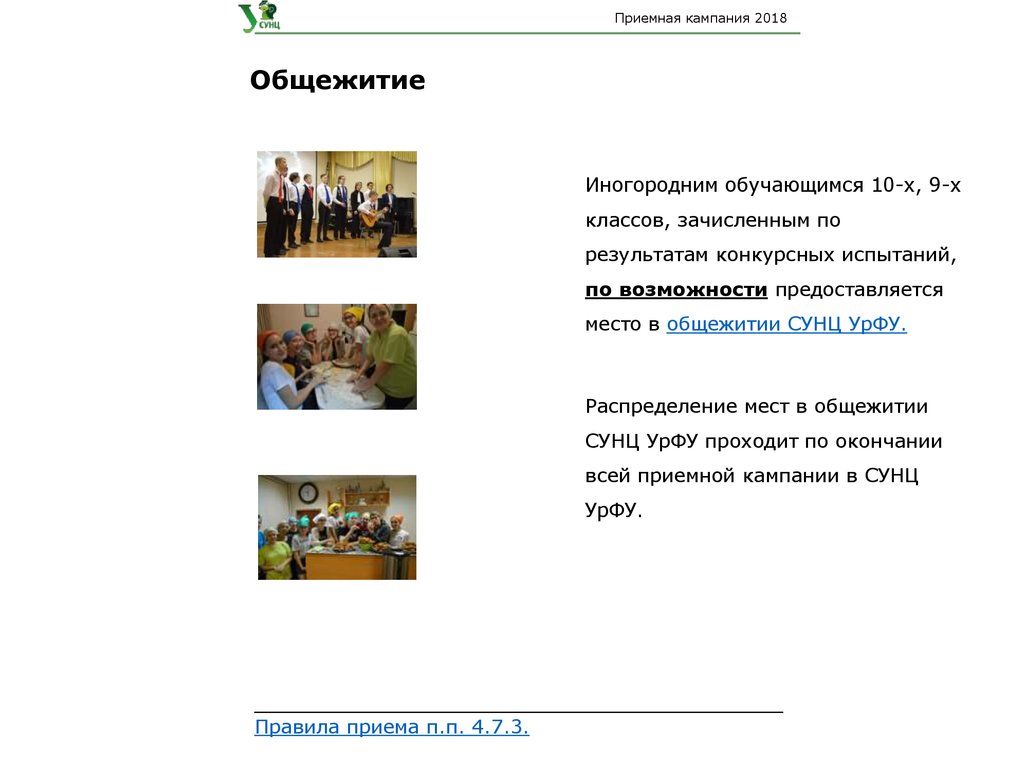 Правилами приема в СУНЦ УрФУ;