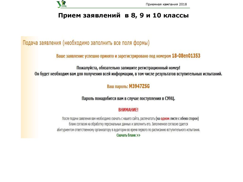Приемная кампания 2018Прием заявлений в 8, 9 и 10 классы4