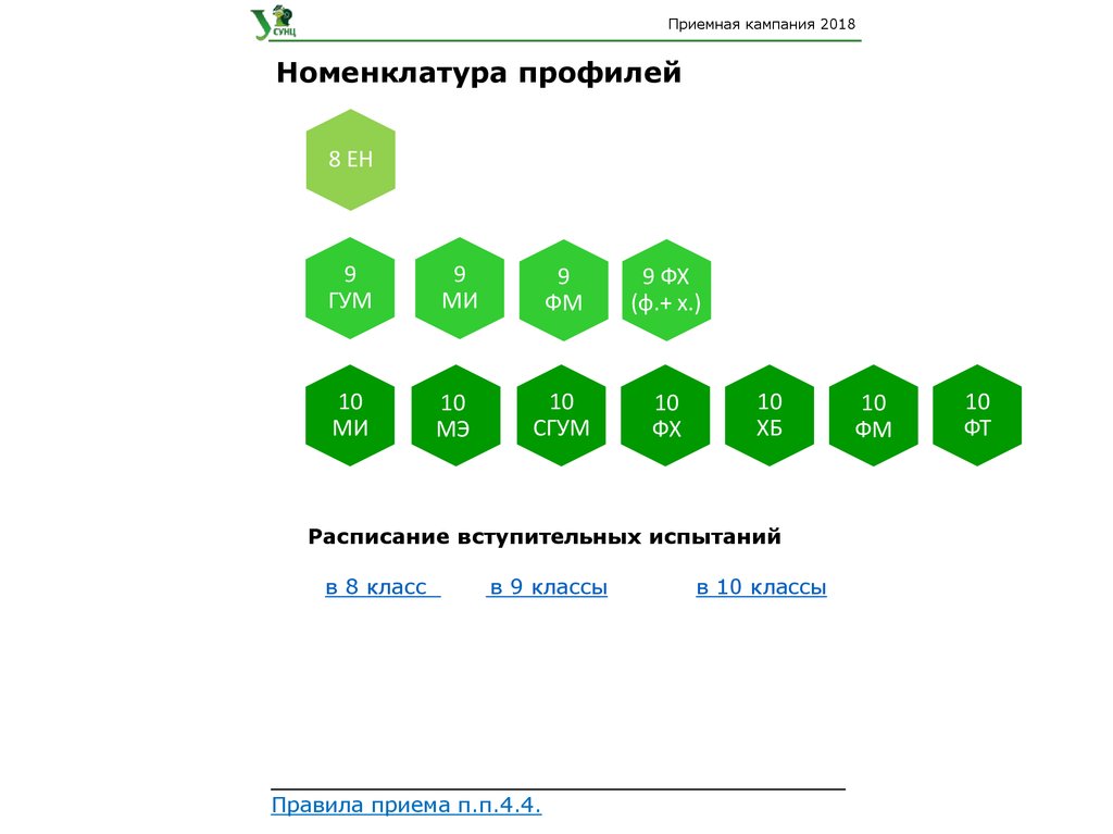 Приемная кампания 2018Номенклатура профилей